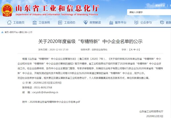 根據《山東省“專精特新”中小企業(yè)認定管理辦法》(魯工信發(fā)〔2020〕7號)、《關于組織申報2020年度山東省“專精特新”中小企業(yè)和對往年“專精特新”中小企業(yè)進行復核的通知》等文件精神,省工業(yè)和信息化廳組織開展了2020年度省級“專精特新”中小企業(yè)評選工作。經主管部門推薦、專家評審等程序,確定我公司為2020年度省級“專精特新”中小企業(yè)。