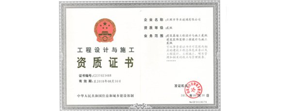 華業(yè)玻璃獲得“建筑幕墻工程設(shè)計(jì)與施工一體化”貳級(jí)資質(zhì)、“建筑裝飾裝修工程設(shè)計(jì)與施工一體化”貳級(jí)資質(zhì)、“金屬門(mén)窗工程專(zhuān)業(yè)承包叁級(jí)資質(zhì)”。